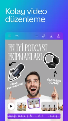 Fotoğraflarınıza estetik bir hava katmaktan, dinamik videolar oluşturmaya kadar, Canva'nın gelişmiş düzenleme araçlarıyla içeriklerinizi dönüştürün. Kırpın, döndürün, parlaklık ve kontrast ayarlamaları yapın veya tek dokunuşla görsel ve videolara animasyonlar ekleyin; profesyonel sonuçlar almak hiç bu kadar kolay olmamıştı. Instagram, YouTube, TikTok, X ve LinkedIn gibi mecralara özel binlerce şablonla sosyal medya stratejinizi güçlendirin ve ekip iş birliği özellikleriyle projelerinizi gerçek zamanlı olarak düzenleyerek, dünyanın dört bir yanındaki arkadaşlarınız veya meslektaşlarınızla kusursuz bir uyum içinde çalışmanın keyfini çıkarın.