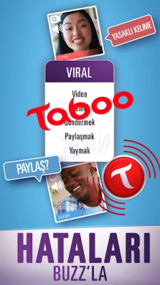Tabu, kelimelerle zekâya meydan okuyan, yetişkinlere özel eşsiz bir parti eğlencesi sunar. Arkadaşlarınızla görüntülü sohbetlerinizde bile coşkulu bir ev partisi atmosferi yaratın. Bu dinamik kelime oyunu, iki takıma ayrılarak kartlardaki anahtar kelimeleri yasaklı sözcükleri kullanmadan anlatmaya dayanır. Zaman daralırken takımınızın mümkün olduğunca çok kelimeyi doğru tahmin etmesi gerekiyor; her doğru tahmin zafer yolunda atılmış bir adımdır.